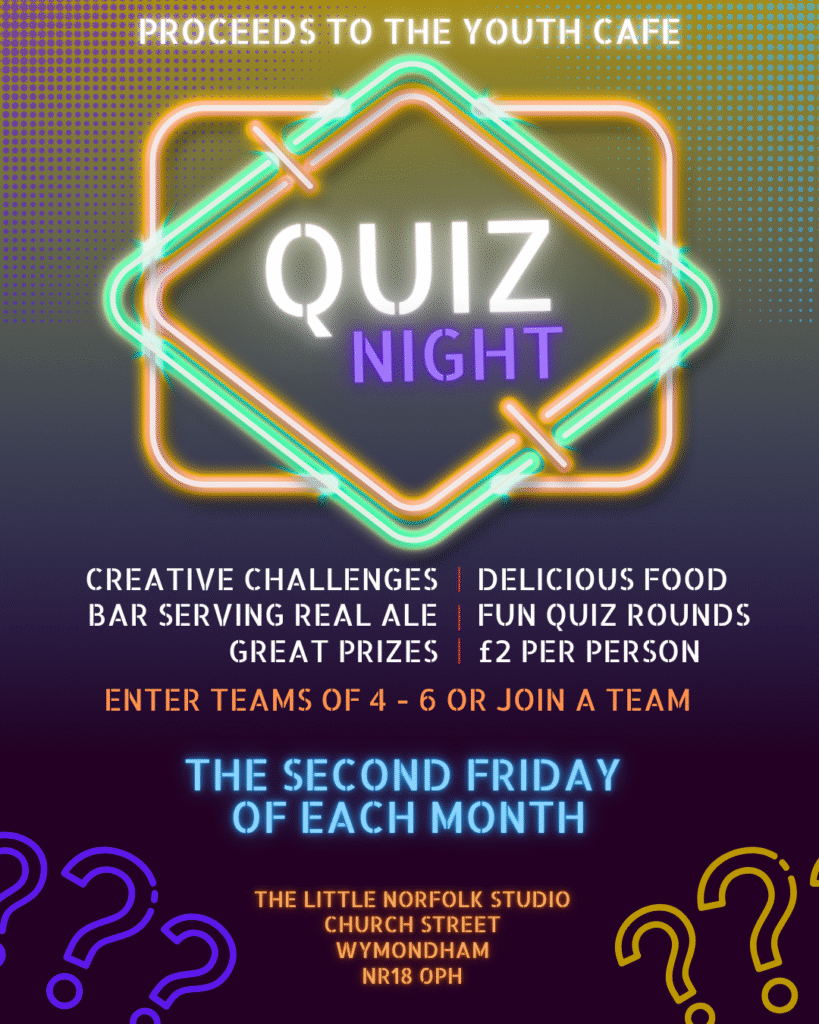 This is a quiz night full of fun. Expect team challenges, creativity, and some games thrown in for good measure.
