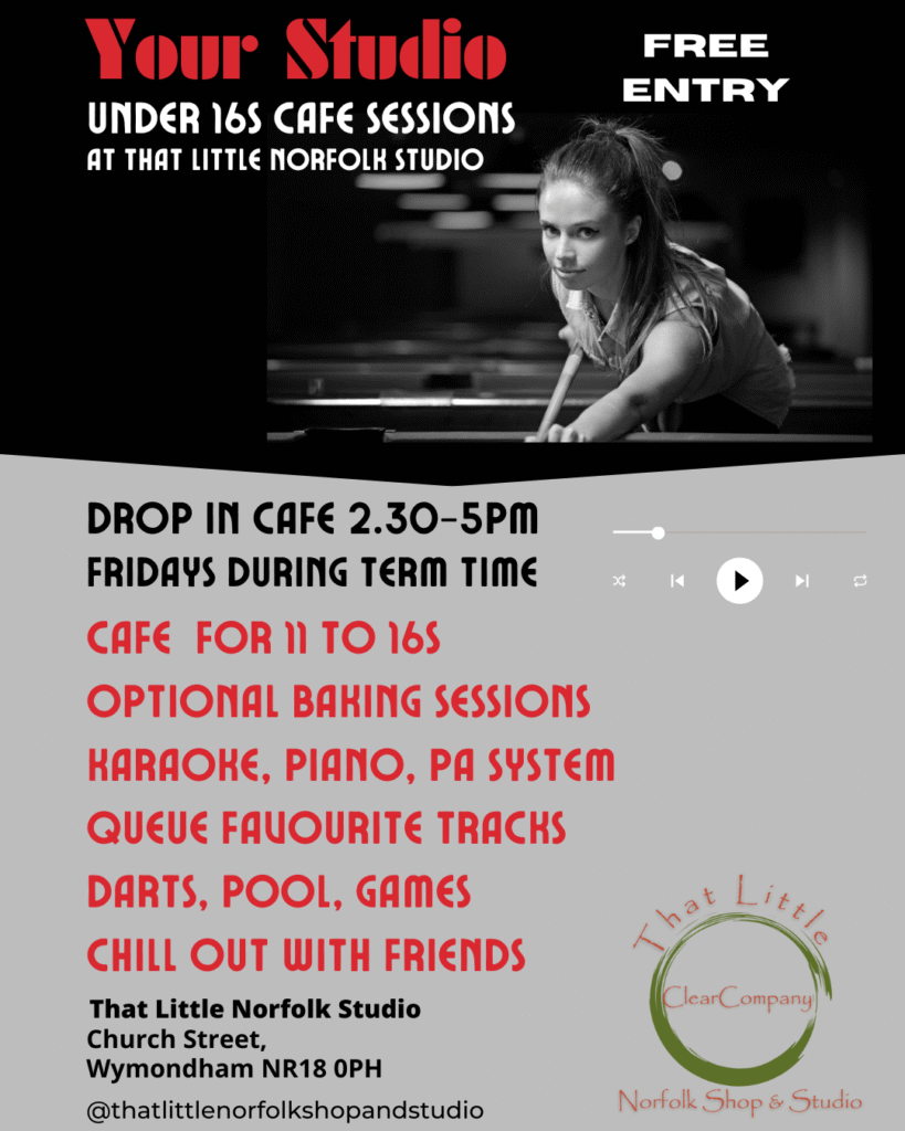 We offer a chilled-out, safe space for young people to meet friends, play pool, sing karaoke, play darts and games, do crafts, and cook! We also have our PA system available for young musicians to plug into our PA system and play.